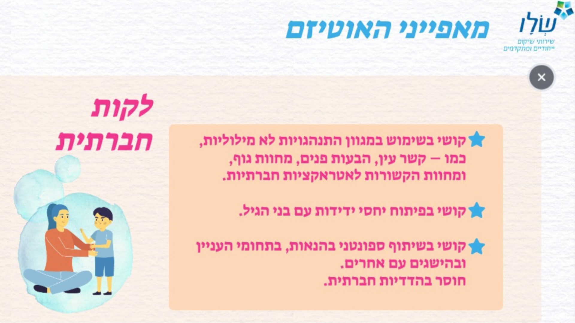 מאפייני האוטיזם